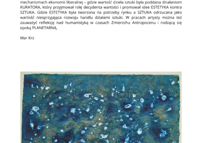 Taka postawa prowadziła do konsekwentnego rozwoju idei na tle rynku sztuki opartego na mechanizmach handlu, gdzie wartość dzieła sztuki była poddana kontekstualizacji. Artysta pełnił rolę deponata wartości i promował estetykę jako wartość ponad na potrzeby konsumpcji – postawa niesprzyjająca rozwojowi handlu sztuką. W jego dziełach można też zauważyć refleksję nad naturą człowieka i jego związkiem ze epoką PLANETARNĄ.